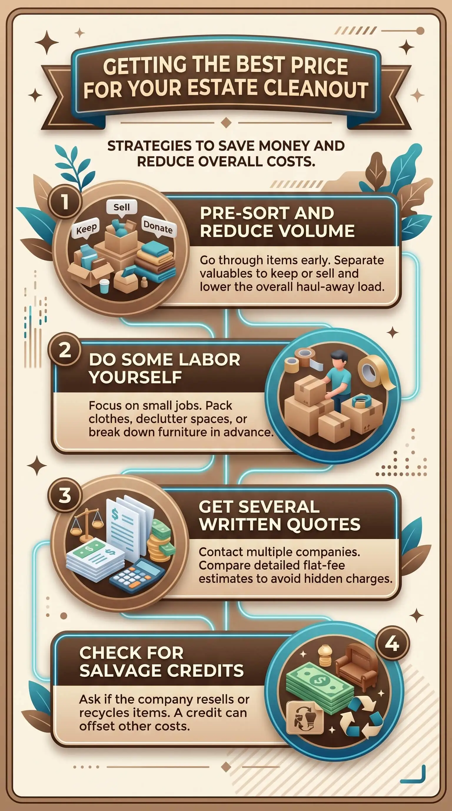 Most of the legitimate cost-reduction moves we see on estate cleanouts happen before the crew arrives. Five tactics consistently move the bill in the right direction:
