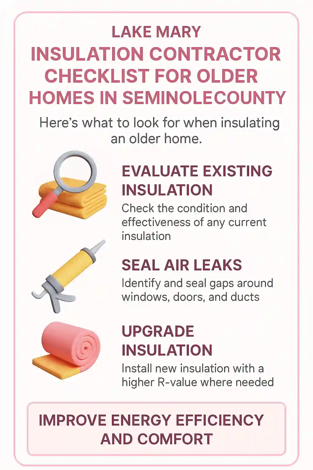 By following this checklist, you can confidently select a Lake Mary insulation contractor who understands older homes, protects your investment, and improves comfort and efficiency for years to come.