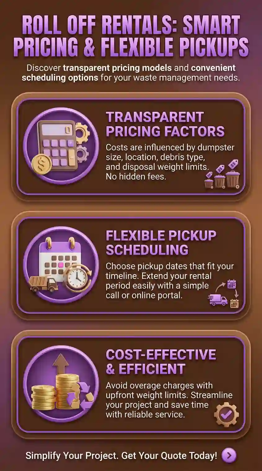 Based on managing flexible scheduling from weekend DIY projects to multi-month renovations with uncertain completion, this guide highlights roll off dumpster rental prices near me as a smart, flexible solution—showing how local pricing rewards the right pickup timing, delivers real value when flexibility matters, and helps homeowners control total costs instead of being locked into rigid schedules.